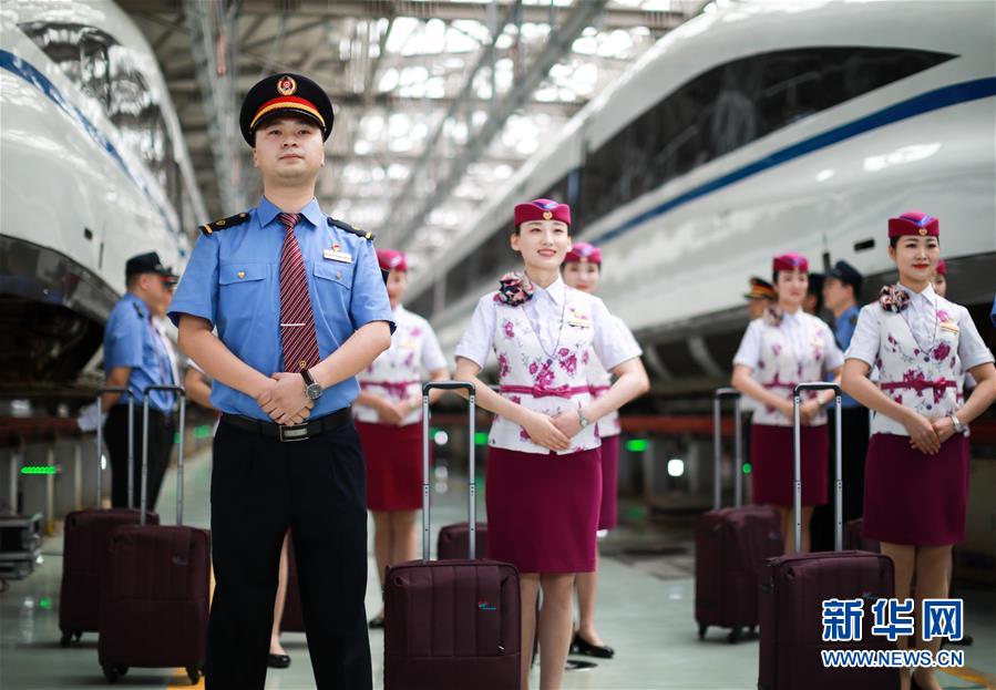 7月3日,擔(dān)任首發(fā)列車值乘工作的班組人員在貴陽(yáng)亮相。  新華社記者 劉續(xù) 攝