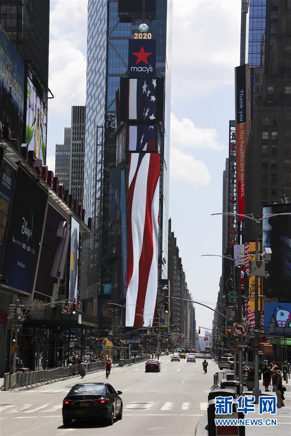 7月4日,美國紐約時報廣場上的行人和車輛稀少。當(dāng)日是美國獨(dú)立日,美國多地疫情仍面臨嚴(yán)峻形勢。美國約翰斯·霍普金斯大學(xué)實時統(tǒng)計數(shù)據(jù)顯示,美國累計新冠確診病例4日已超過280萬例。新華社記者王迎攝