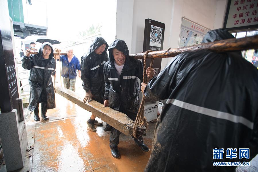 7月6日,工作人員在武漢龍王廟封堵閘口。記者6日從武漢市防汛抗旱指揮部辦公室獲悉,5日以來(lái),武漢遭暴雨襲擊,全市多處路段漬水。至6日4時(shí),長(zhǎng)江漢口站超設(shè)防水位1.79米,漢江新溝站超警戒水位0.01米。鑒于當(dāng)前水雨汛情和漬澇情況,武漢市從6日5時(shí)起,將排澇應(yīng)急響應(yīng)級(jí)別提升至Ⅱ級(jí);從6時(shí)30分起,將防汛應(yīng)急響應(yīng)級(jí)別提升至Ⅱ級(jí)。新華社記者肖藝九攝