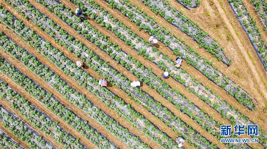 7月6日,貴州省六枝特區(qū)郎岱鎮(zhèn)青龍村村民在田地里勞作(無人機照片)。當日是小暑節(jié)氣,貴州省各地農民不誤農時,忙碌在田間地頭。新華社記者陶亮攝