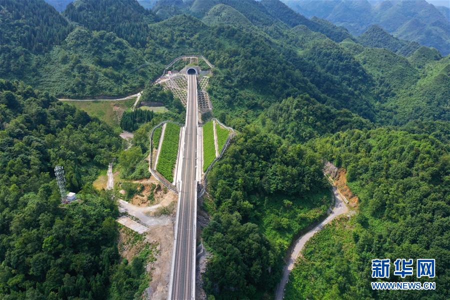7月6日拍攝的安六鐵路彭家沖一號大橋附近的景觀(無人機(jī)照片)。當(dāng)日,新建貴州安六鐵路(安順至六盤水)聯(lián)調(diào)聯(lián)試工作進(jìn)入收尾階段,開通前的各項(xiàng)準(zhǔn)備工作已基本就緒。安六鐵路線路全長約125公里,設(shè)計(jì)時(shí)速250公里,為國家I級雙線客運(yùn)專線。建成投用后,貴陽至六盤水的鐵路旅行時(shí)間可從現(xiàn)在的3.5小時(shí)縮短為1小時(shí)左右,貴州省六盤水市將全面接入全國高鐵網(wǎng)。新華社記者劉續(xù)攝