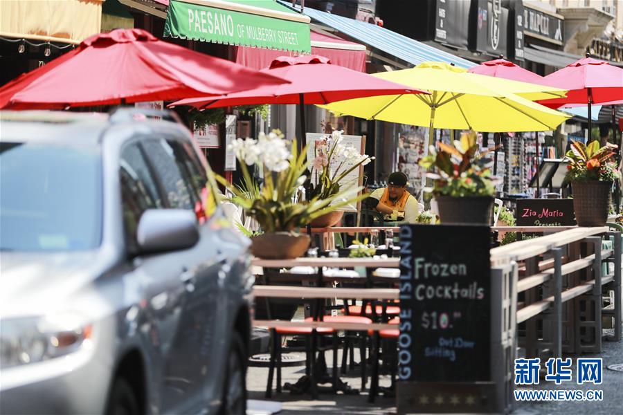 7月6日,一名男子騎車從美國紐約一家餐廳的戶外餐區(qū)旁經(jīng)過。當(dāng)天,紐約進入重啟第三階段,美甲店、按摩店等個人護理業(yè)在經(jīng)歷近4個月的停業(yè)后被允許重新開放。因防疫需要,原本應(yīng)在第三階段開放的餐飲業(yè)室內(nèi)就餐仍處于暫停狀態(tài)。新華社記者王迎攝