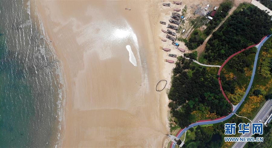 7月7日拍攝的緊靠海岸線的日照陽光海岸綠道(無人機照片)。新華社記者王凱攝