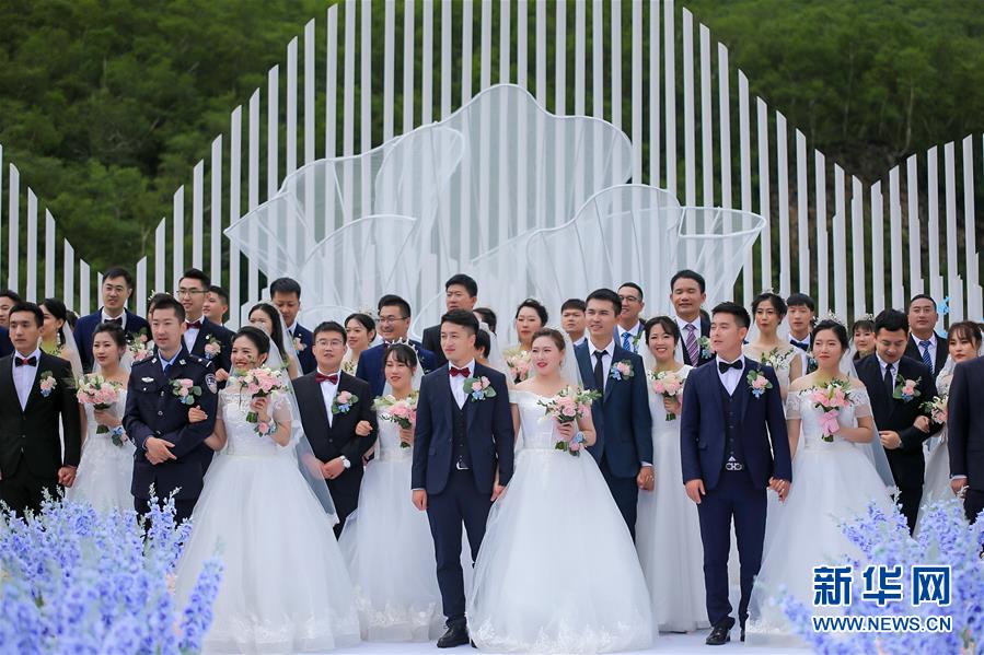當日,吉林省長白山管委會舉行“致敬最美逆行者”大型集體婚禮,50對來自全國各地因參加抗擊疫情工作而推遲婚期的新人參加。