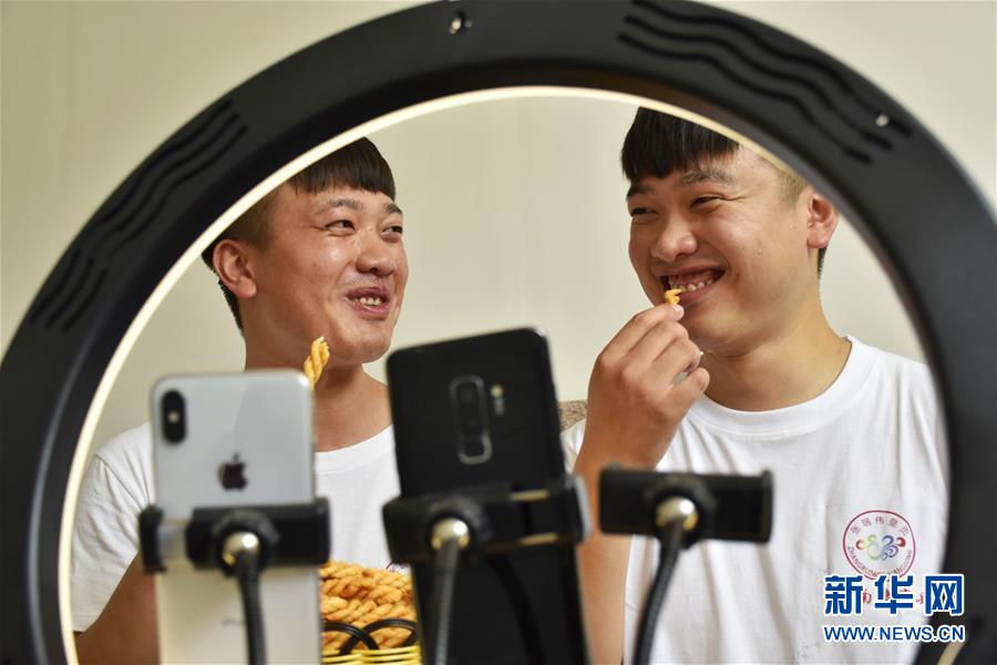 7月8日,張亞博(左)、張亞釗兄弟在直播帶貨。新華社記者韓朝陽攝