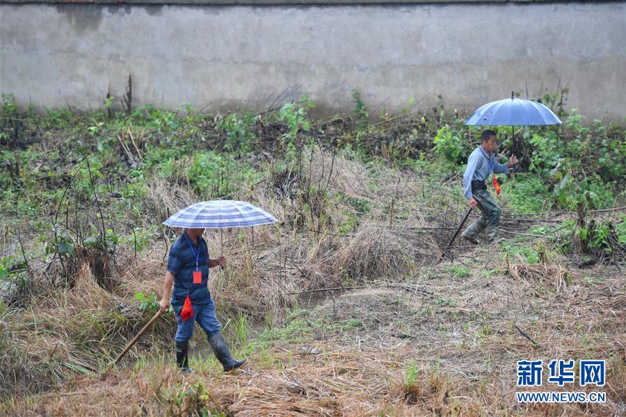 在益陽市大通湖區(qū)東大堤,工作人員在進行清基掃障(7月8日攝)。新華社記者陳澤國攝