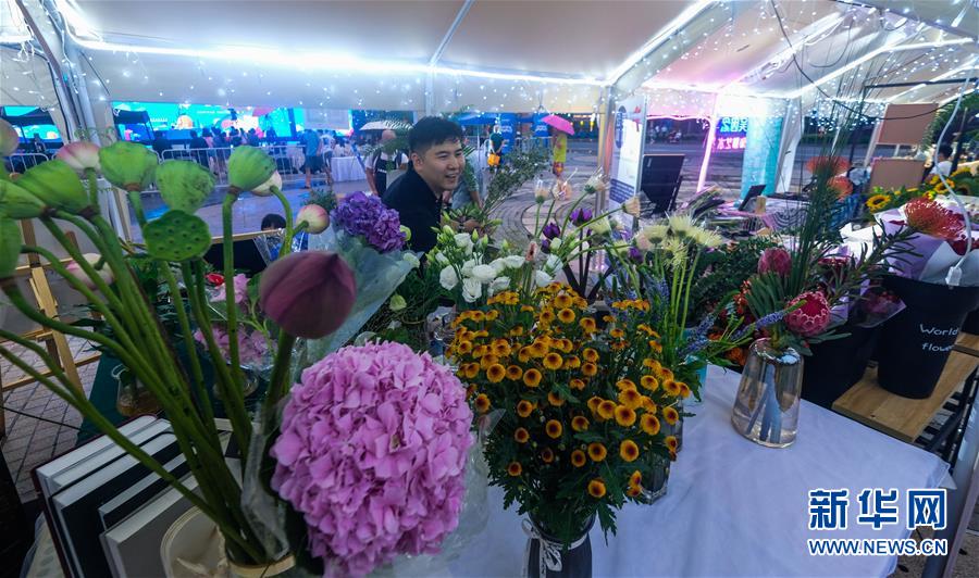 7月10日,工作人員在嘉年華現場插花攤位忙碌。新華社記者徐昱攝。