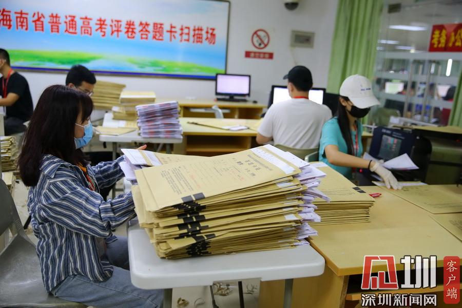 2020年7月13日,在海南師范大學高考評卷場,工作人員仔細拆封考卷并進行掃描入電腦,整個過程井然有序。在評卷現(xiàn)場的入口,除了有武警把守之外,所有工作人員進入到評卷場均有專人使用手柄式金屬探測器對其進行安檢,并通過身份證識別系統(tǒng)中進行身份識別,方可以進入??忌痤}卡由武警24小時值守,并實行嚴密的視頻監(jiān)控。