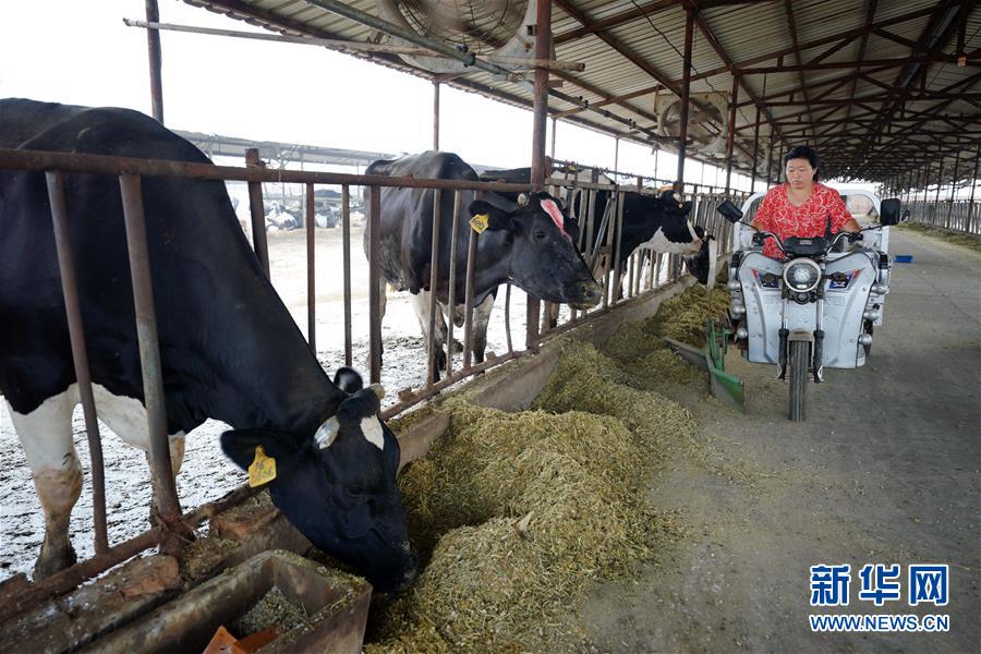 7月11日,河北省清河縣永興奶牛養(yǎng)殖場(chǎng)的工人在給奶牛投放飼料。近年來(lái),河北省清河縣將扶貧工作與現(xiàn)代農(nóng)業(yè)結(jié)合,以龍頭企業(yè)為引領(lǐng),成立合作社,鼓勵(lì)貧困戶(hù)利用扶貧資金入股奶牛養(yǎng)殖場(chǎng),幫助他們常年獲得穩(wěn)定收益。同時(shí),貧困戶(hù)農(nóng)閑時(shí)還可到產(chǎn)業(yè)園區(qū)打工,既拿股金,又掙薪金,實(shí)現(xiàn)“造血式”脫貧。新華社記者 牟宇 攝