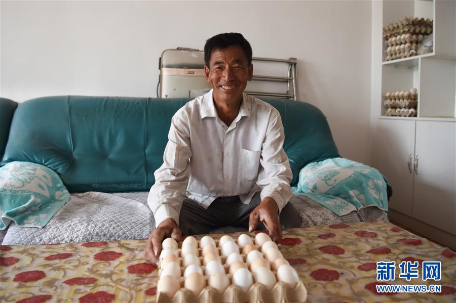 7月14日,高二仁在展示自家的雞蛋。新華社記者 李志鵬 攝