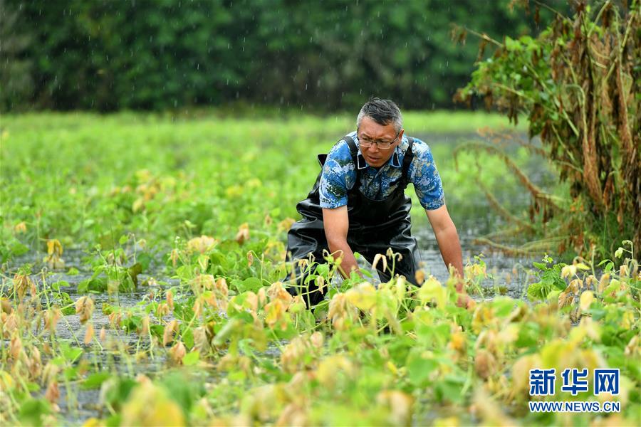 劉良武在堤壩內(nèi)側(cè)積水處排查泡泉(7月19日攝)。新華社記者周密攝