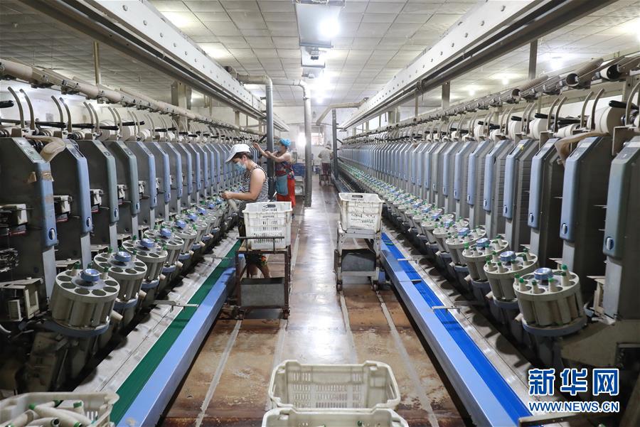 7月20日,工人在灤南縣長凝鎮(zhèn)的一家紡織廠生產車間里工作。近年來,河北省灤南縣大力發(fā)展村邊民營企業(yè),引導企業(yè)在鄉(xiāng)鎮(zhèn)村邊建廠,帶動當?shù)?萬多名農村群眾在村邊就近就業(yè),實現(xiàn)穩(wěn)步增收。新華社記者楊世堯攝