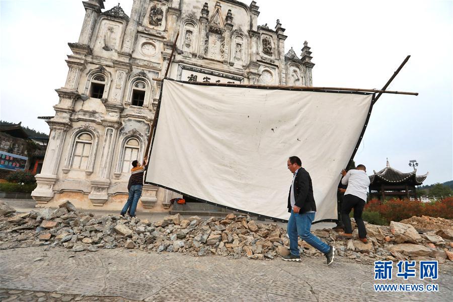 2019年3月19日,在天柱縣坌處鎮(zhèn)三門(mén)塘村,黃宜?。ㄖ校┰诖罱娪安シ拍徊?。侗族青年黃宜印是貴州省黔東南苗族侗族自治州天柱縣的一名公益電影放映員。從2014年起,他常年行走在大山里,為山區(qū)群眾播放電影。僅2018年,黃宜印就在天柱縣的37個(gè)村寨播放電影444場(chǎng)。新華社記者歐東衢攝