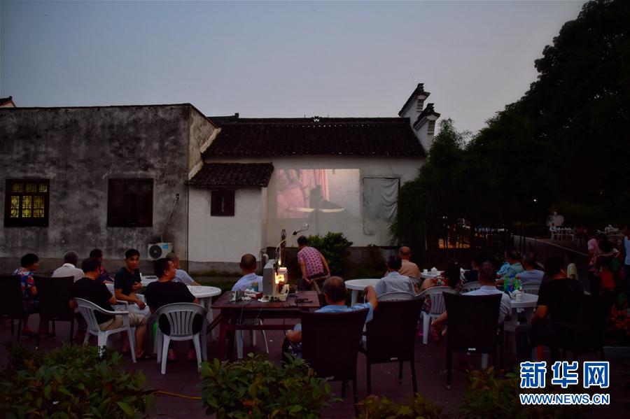 2020年6月30日,浙江嘉興桐鄉(xiāng)市洲泉鎮(zhèn)馬鳴村村民自發(fā)圍坐在廣場觀看電影。在浙江嘉興桐鄉(xiāng)市洲泉鎮(zhèn)馬鳴村,王志華、朱文炳、朱生榮、朱強四代電影放映員,“接力”放映電影五十余年。新華社記者鄭夢雨攝
