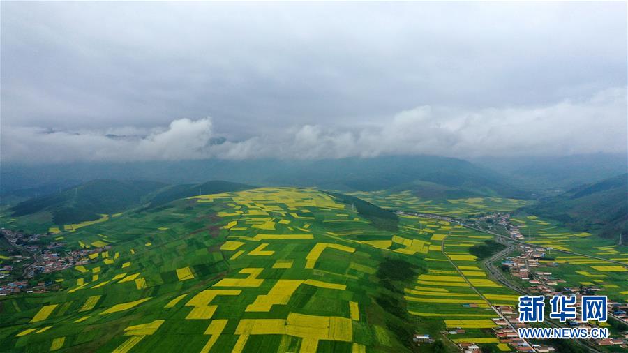 7月23日在門源回族自治縣拍攝的雨后田園風(fēng)光(無人機照片)。新華社記者 張宏祥 攝