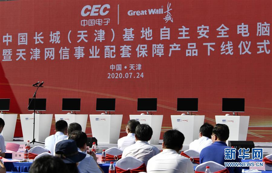 7月24日在中國長城(天津)基地拍攝的儀式現(xiàn)場。當(dāng)日,中國長城(天津)基地自主安全電腦暨天津網(wǎng)信事業(yè)配套保障產(chǎn)品下線儀式在天津?yàn)I海高新區(qū)舉行。據(jù)了解,中國長城(天津)基地網(wǎng)信事業(yè)配套保障體系項(xiàng)目主要服務(wù)華北地區(qū),生產(chǎn)國產(chǎn)化自主安全電腦,建設(shè)國產(chǎn)化自主安全數(shù)據(jù)中心。新華社記者李然攝