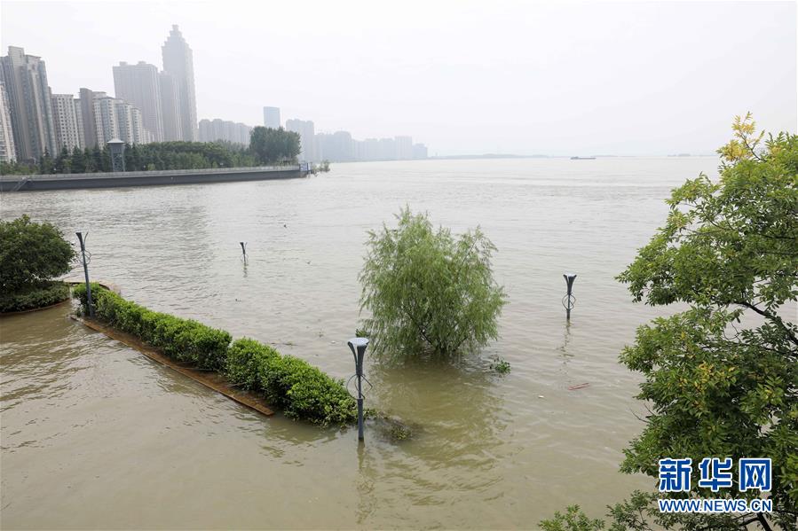 這是被江水淹沒(méi)的蕪湖市濱江公園一角(7月25日攝,無(wú)人機(jī)照片)。新華社記者 曹力 攝