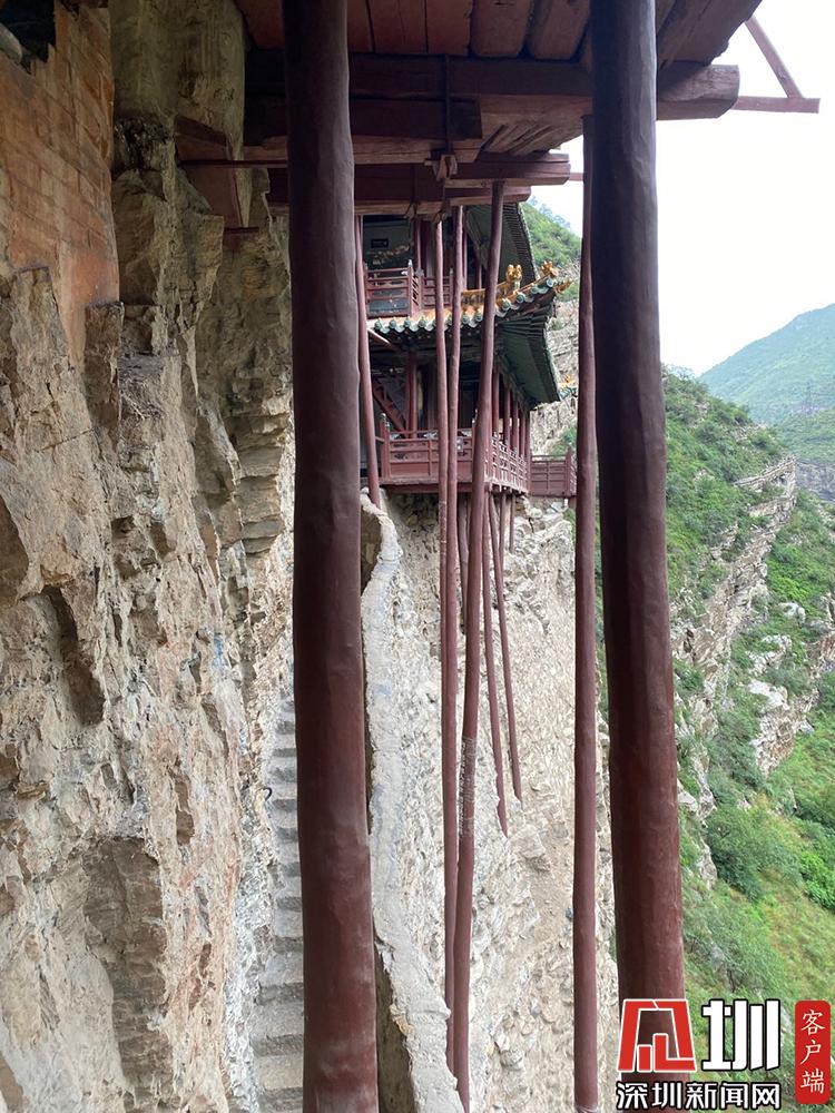 要登上懸空寺,需要走過(guò)一條非常窄的道路,這條路修建在懸崖的旁邊,依靠著山勢(shì)而建造。李穎 攝