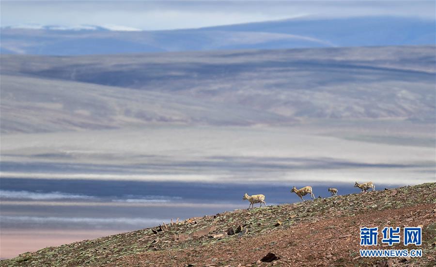 這是7月7日在可可西里卓乃湖區(qū)域拍攝的藏羚羊。新華社記者張龍攝