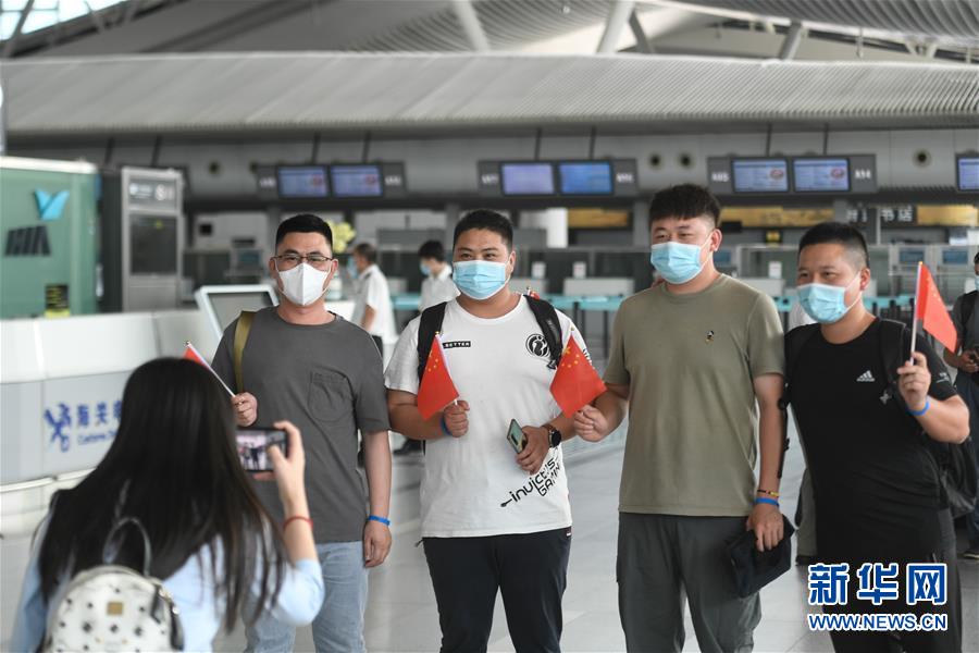 7月29日,在杭州蕭山國(guó)際機(jī)場(chǎng),電力工程技術(shù)人員在進(jìn)入安檢通道前合影。當(dāng)日,中國(guó)能源建設(shè)集團(tuán)浙江火電建設(shè)有限公司的113名電力工程技術(shù)人員在杭州蕭山國(guó)際機(jī)場(chǎng)集結(jié),啟程飛赴印度尼西亞首都雅加達(dá)。他們將重新投入到印尼多個(gè)“一帶一路”重點(diǎn)工程的建設(shè)中。新華社記者黃宗治攝
