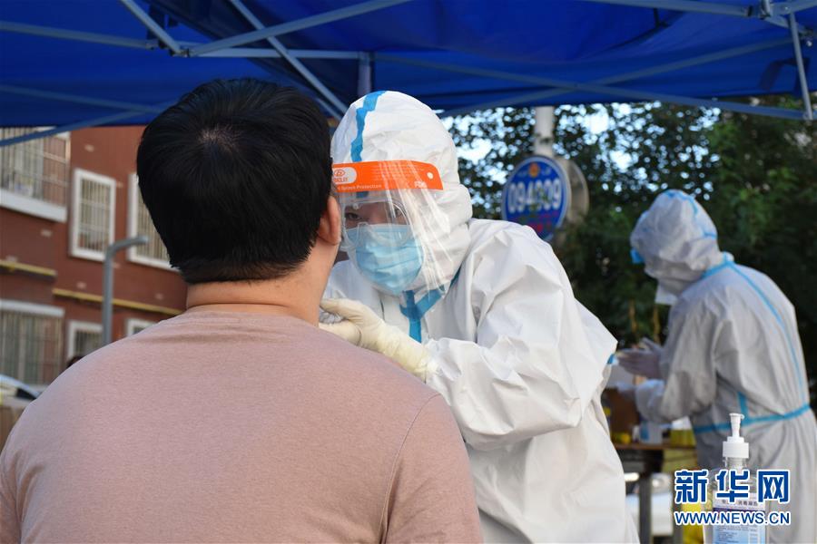 8月5日,醫(yī)務(wù)工作者在烏魯木齊市天山區(qū)山西巷社區(qū),對(duì)居民開展免費(fèi)核酸檢測(cè)服務(wù)。新華社記者高晗攝