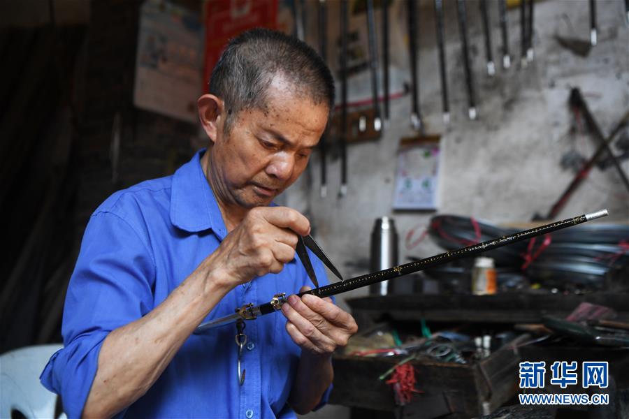 8月5日,豐盛古鎮(zhèn)經(jīng)營秤桿店的居民王澤喜在制作秤桿。近年來,重慶市巴南區(qū)引入社會資本,按照“修舊如舊、適度開發(fā)”的原則對豐盛古鎮(zhèn)進行保護性修繕和景區(qū)化打造,讓古鎮(zhèn)在保留原有歷史人文風貌的同時,煥發(fā)新活力。新華社記者王全超攝