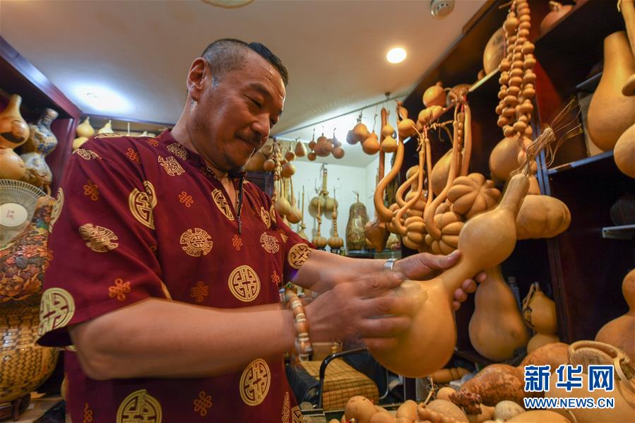 8月5日,侯景偉打磨葫蘆外皮。今年55歲的吉林四平人侯景偉自幼與家人學(xué)習(xí)雕刻、烙畫(huà)藝術(shù)。經(jīng)過(guò)多年潛心研究,他將浮雕和烙畫(huà)工藝相結(jié)合,通過(guò)拋光、起稿、雕刻、烙燙、套色等十余道工藝,制作展現(xiàn)傳統(tǒng)文化、民俗故事的葫蘆工藝品。2020年,侯景偉被評(píng)為四平市非物質(zhì)文化遺產(chǎn)項(xiàng)目侯氏葫蘆雕刻烙畫(huà)代表性傳承人。他說(shuō):“希望有更多人加入到非遺傳承隊(duì)伍中,讓小葫蘆‘講’出更多民俗故事?!毙氯A社記者張楠攝