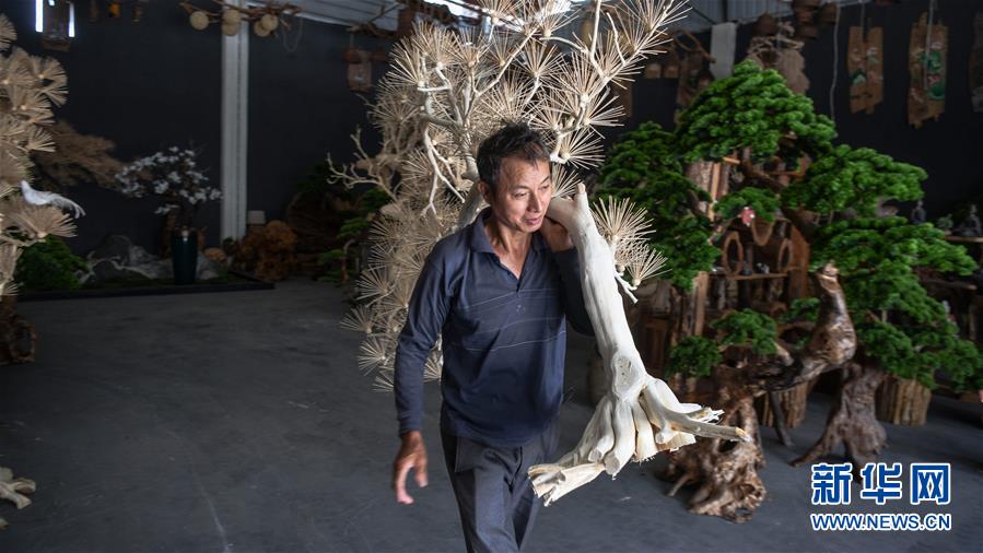 8月7日,一名工人在永福縣永安鄉(xiāng)根雕工藝品就業(yè)扶貧車(chē)間搬運(yùn)根雕半成品。2017年以來(lái),廣西桂林市永??h永安鄉(xiāng)通過(guò)幫扶返鄉(xiāng)青年創(chuàng)業(yè)的方式,建立起根雕工藝品就業(yè)扶貧車(chē)間,組織貧困群眾進(jìn)車(chē)間務(wù)工學(xué)藝,把當(dāng)?shù)刎S富的朽木和柑橘樹(shù)根枝資源利用起來(lái),加工成盆景、茶桌、吊燈等根雕工藝品,不僅幫助貧困群眾在家門(mén)口掌握一技之長(zhǎng),還讓他們?cè)诿撠氄焙髮?shí)現(xiàn)穩(wěn)定增收。新華社記者張愛(ài)林?jǐn)z