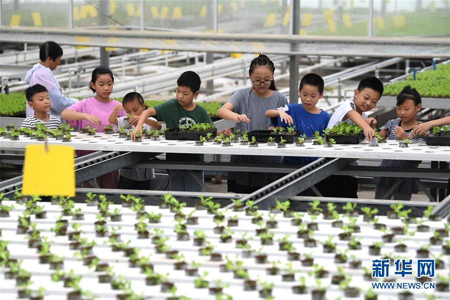 8月9日,在花崗鎮(zhèn)現(xiàn)代農(nóng)業(yè)示范區(qū)一家蔬菜種植企業(yè)內(nèi),小朋友在體驗移栽蔬菜幼苗。當日,安徽省肥西縣花崗鎮(zhèn)開展暑期“親近自然體驗田園”活動,邀請轄區(qū)兒童參觀花崗鎮(zhèn)現(xiàn)代農(nóng)業(yè)示范區(qū),感受現(xiàn)代農(nóng)業(yè)的魅力。新華社記者劉軍喜攝。