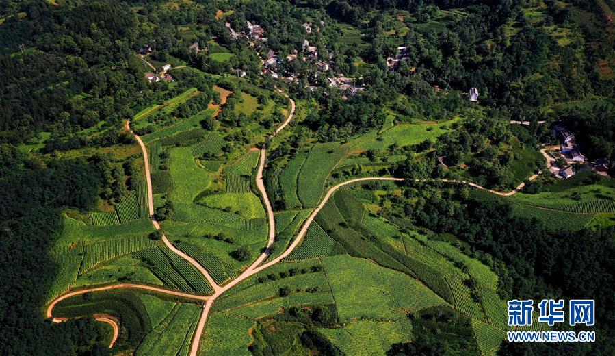 陜西省洛南縣石門鎮(zhèn)花廟村的連戶路(7月27日攝,無人機(jī)照片)。新華社記者劉瀟攝。
