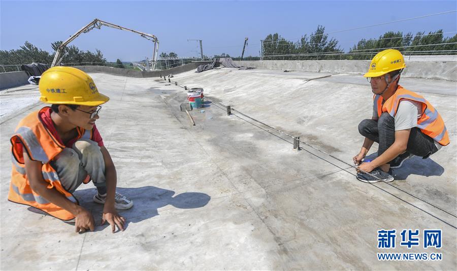 8月10日,工人在京雄城際鐵路霸州北站建設(shè)工地進(jìn)行屋面坡層校核。京雄城際鐵路霸州北站站臺雨棚混凝土結(jié)構(gòu)施工日前全部完成,目前霸州北站已全面轉(zhuǎn)入裝飾裝修和機電安裝階段,預(yù)計2020年底投入使用。京雄城際鐵路是連接北京市區(qū)、大興機場和雄安新區(qū)的重要干線。建成后,將進(jìn)一步完善京津冀區(qū)域高速鐵路網(wǎng)結(jié)構(gòu),便利沿線群眾出行,對于推動京津冀協(xié)同發(fā)展和支撐建設(shè)雄安新區(qū)具有重要意義。新華社記者李曉果攝。