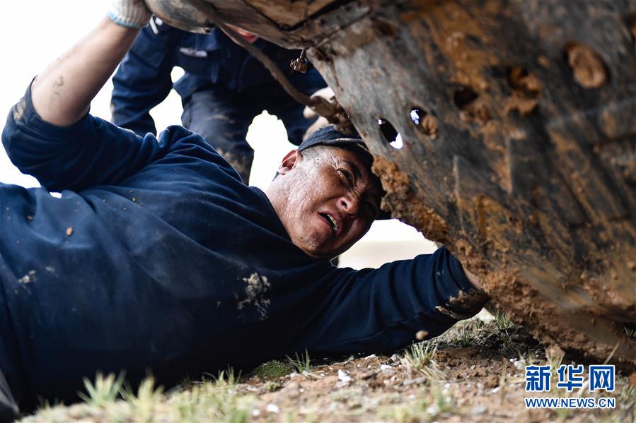 7月6日,卓乃湖保護站站長秋培扎西在可可西里地區(qū)修理車輛。世界自然遺產(chǎn)地可可西里,全球生態(tài)版圖中一處熠熠生輝的坐標(biāo),野生動物種類繁多。藏羚羊,被稱為“可可西里的驕傲”。今年藏羚羊遷徙產(chǎn)仔季,記者跟隨可可西里巡山隊員前往“藏羚羊大產(chǎn)房”卓乃湖巡山,感受他們守護“人間凈土”的堅守與奉獻(xiàn)。暴雨、烈日、冰雹、泥濘……通向“藏羚羊大產(chǎn)房”卓乃湖的14個半小時經(jīng)歷,令人難忘。新華社記者張龍攝