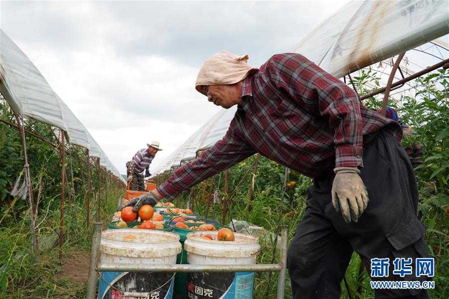 8月11日,在寧安市慶雨蔬菜專業(yè)合作社蔬菜產(chǎn)業(yè)園基地,工人把剛采摘下來的西紅柿裝入桶中準備運走。近年來,黑龍江省寧安市把設(shè)施蔬菜作為精準扶貧的主導(dǎo)產(chǎn)業(yè)來抓,組織吸納貧困戶貸資加入產(chǎn)業(yè)合作社,帶動貧困戶脫貧增收。寧安市將全市500余戶貧困戶的小額信貸資金集中投放到寧安市慶雨蔬菜專業(yè)合作社,建設(shè)蔬菜產(chǎn)業(yè)園基地,在帶動貧困戶脫貧增收的同時,壯大合作社蔬菜產(chǎn)業(yè)。新華社記者王建威攝。