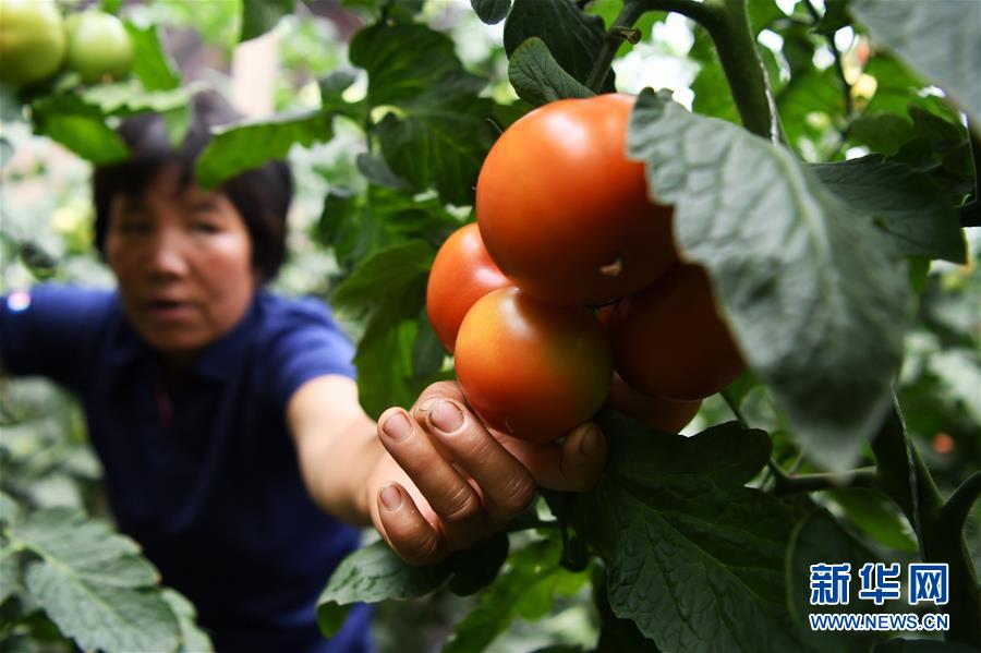 8月11日,在甘肅省臨夏回族自治州臨夏縣先鋒鄉(xiāng)前韓村,搬遷戶韓貴蘭在日光溫室內(nèi)采摘西紅柿。近年來,甘肅省臨夏回族自治州臨夏縣把易地扶貧搬遷作為打贏脫貧攻堅戰(zhàn)的重要任務,科學推進易地扶貧搬遷和脫貧攻堅工作。為了讓搬遷群眾能夠安居樂業(yè),當?shù)卣⒅胤龀趾罄m(xù)產(chǎn)業(yè)發(fā)展,引導搬遷群眾發(fā)展日光溫室、布鞋加工、觀光農(nóng)業(yè)、特色種養(yǎng)殖等產(chǎn)業(yè),幫助搬遷群眾實現(xiàn)就近就業(yè)、拓寬增收渠道,確保搬遷群眾“搬得出、穩(wěn)得住、有事做、能致富”。新華社記者陳斌攝
