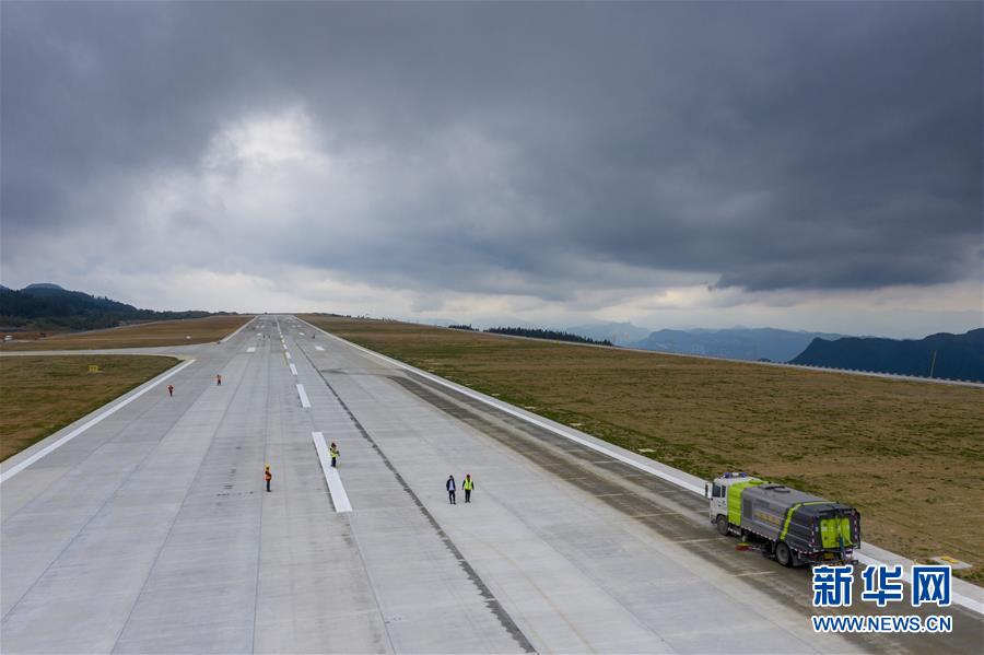 8月12日,校飛正式開始前一天,工作人員對仙女山機場跑道路面進(jìn)行清潔(無人機照片)。8月13日,位于重慶武隆區(qū)的仙女山機場飛行校驗工作正式開始。據(jù)介紹,重慶仙女山機場校飛時間大約需3至5天。重慶仙女山機場于2018年4月全面開工,機場跑道長2800米、寬45米,航站樓總面積6000平方米,投用后可滿足每年60萬人次的旅客吞吐量。新華社記者劉潺攝