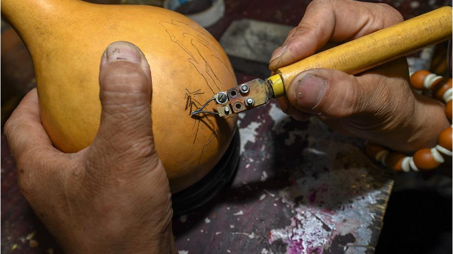 8月5日,侯景偉在葫蘆上進(jìn)行創(chuàng)作。經(jīng)過多年潛心研究,他將浮雕和烙畫工藝相結(jié)合,通過拋光、起稿、雕刻、烙燙、套色等十余道工藝,制作展現(xiàn)傳統(tǒng)文化、民俗故事的葫蘆工藝品。 【詳細(xì)】