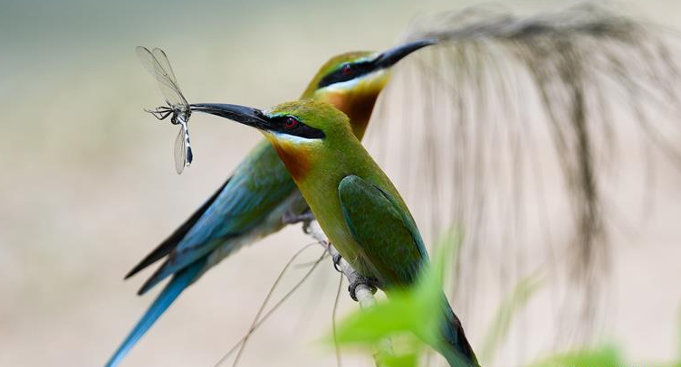 近日,不少栗喉蜂虎來(lái)到海南省??谑兄卜敝?,據(jù)海口畓榃濕地研究所工作人員統(tǒng)計(jì),目前來(lái)到海口的栗喉蜂虎已有近200只。