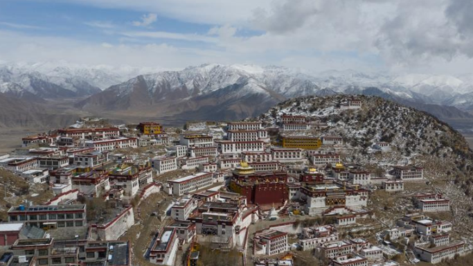 近日,拉薩周邊出現(xiàn)降雪天氣,坐落在達(dá)孜縣海拔3800米的旺波日山上的甘丹寺雪后景致迷人。