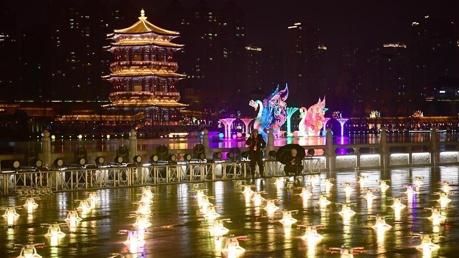 春節(jié)期間,寧夏銀川市永寧縣舉辦“永寧大集,大吉永寧”新春燈會(huì),眾多市民前來(lái)賞花燈、品美食,度春節(jié)。