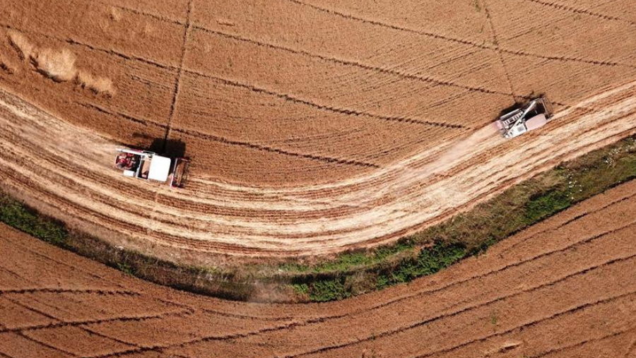 6月2日,在合肥市蜀山區(qū)小廟鎮(zhèn)馬崗村,農(nóng)機手操作機械設(shè)備收割小麥。