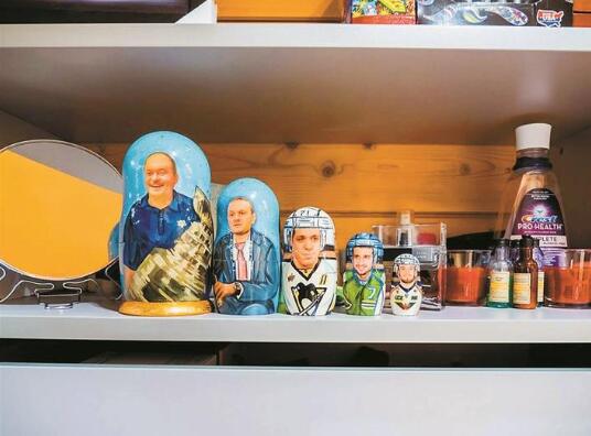 說起來,老烏沙科夫和中國也有點緣分,因為他的兒媳婦是一位來自中國杭州的女孩。烏沙科夫的家處于莫斯科郊外的富人區(qū),其實當(dāng)你踏入他家大門,就能立刻感覺踏入了一個冰球運動員的世界。墻角里擺放著的全是冰球桿,家里的各種裝飾也都是由冰球桿以及各種海報組成的。最有趣的是,套娃和伏特加酒瓶上,都特別定制著老人的照片?!斑@個很棒!”記者指著套娃說道,而老烏沙科夫聳聳肩,表示很淡定。