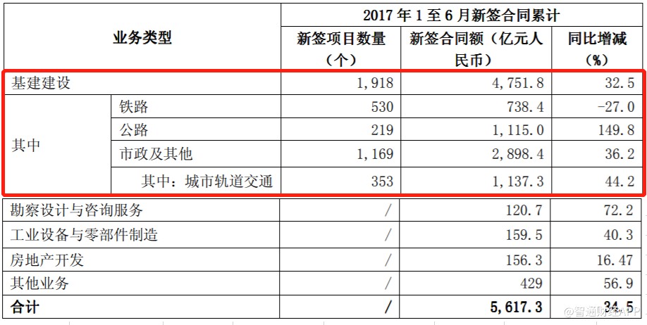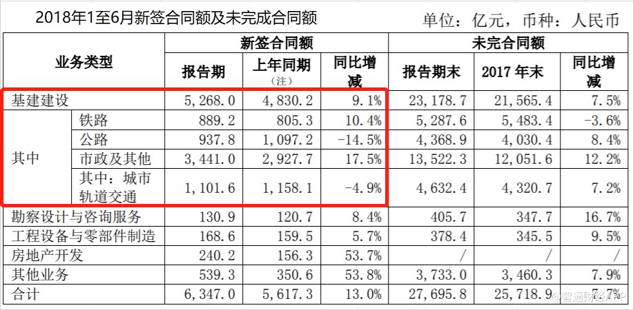 今年上半年,中國中鐵基建建設(shè)業(yè)務(wù)新簽合同5268億元,同比增長9.1%,盡管依然維持增長,但增速較2017年上半年的32.5%大幅放緩,其中公路及城市軌道交通新簽合同額錄得負(fù)增長。