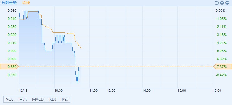 希望教育(01765)盤中一度跌至0.86港元,再創(chuàng)上市新低,月內(nèi)跌幅超三成。截至11時(shí)14分,跌7.37%,報(bào)價(jià)0.88港元,成交額2003.78萬。