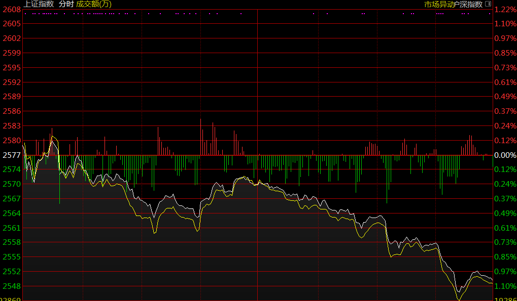 云財經(jīng)訊,指數(shù)今日小幅高開,地產(chǎn)板塊早盤沖高帶領指數(shù)上行,但隨后兩市快速跳水翻綠。午后指數(shù)繼續(xù)下行,多頭毫無抵抗,ST板塊、創(chuàng)投概念雖然輪番拉升但難掩大盤頹勢。盤面上,個股普跌,漲停25家,跌停5家。板塊方面,公共交通、房地產(chǎn)、西安自貿(mào)區(qū)等板塊逆勢上漲,石油開采、豬肉、醫(yī)藥等板塊跌幅居前。截止收盤,滬指跌1.05%,報2549點;深成指跌1.48%,報7418點;創(chuàng)業(yè)板指跌1.90%,報1268點。兩市成交較前一交易日縮量。(云財經(jīng))