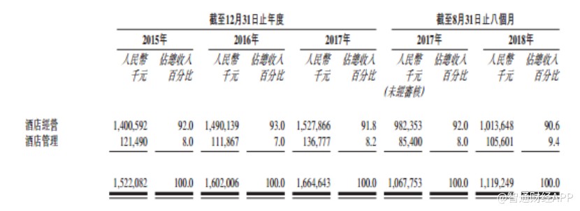 招股書顯示,截至2018年8月底,公司酒店經營業(yè)務下擁有31家酒店,其中29家租賃酒店和2家自營酒店;公司酒店管理業(yè)務下擁有109家酒店,其中96家為全方位服務管理酒店及13家特許經營酒店。