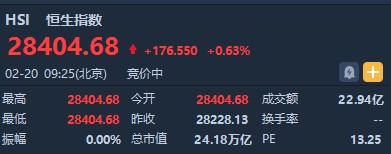 智通財(cái)經(jīng)APP獲悉,恒生指數(shù)開盤漲0.63%,報(bào)28404.68點(diǎn)。國企指數(shù)漲0.78%,報(bào)11203.52點(diǎn)。紅籌指數(shù)漲0.55%,報(bào)4503.48點(diǎn)。大市盤前成交22.94億港元。隔夜美股方面,納指、標(biāo)指微漲,道指近乎平收,港股ADR指數(shù)全日走好。