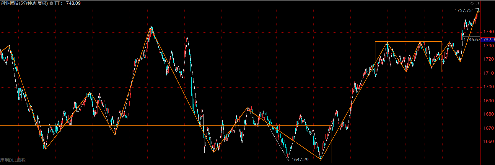 創(chuàng)業(yè)板本周創(chuàng)下八個月新高,完成了歐奈爾杯柄的一次突破,下一步要面臨1792點的前高大壓力位。日K線看,這個位置需要橫盤整固一段時間,同時也利于構建下方中樞的第三類買點。小級別看,同樣是運行良好的多頭趨勢,目前在背馳段里,本周初的回踩只要不跌破1735點,均可以安心持股待漲。