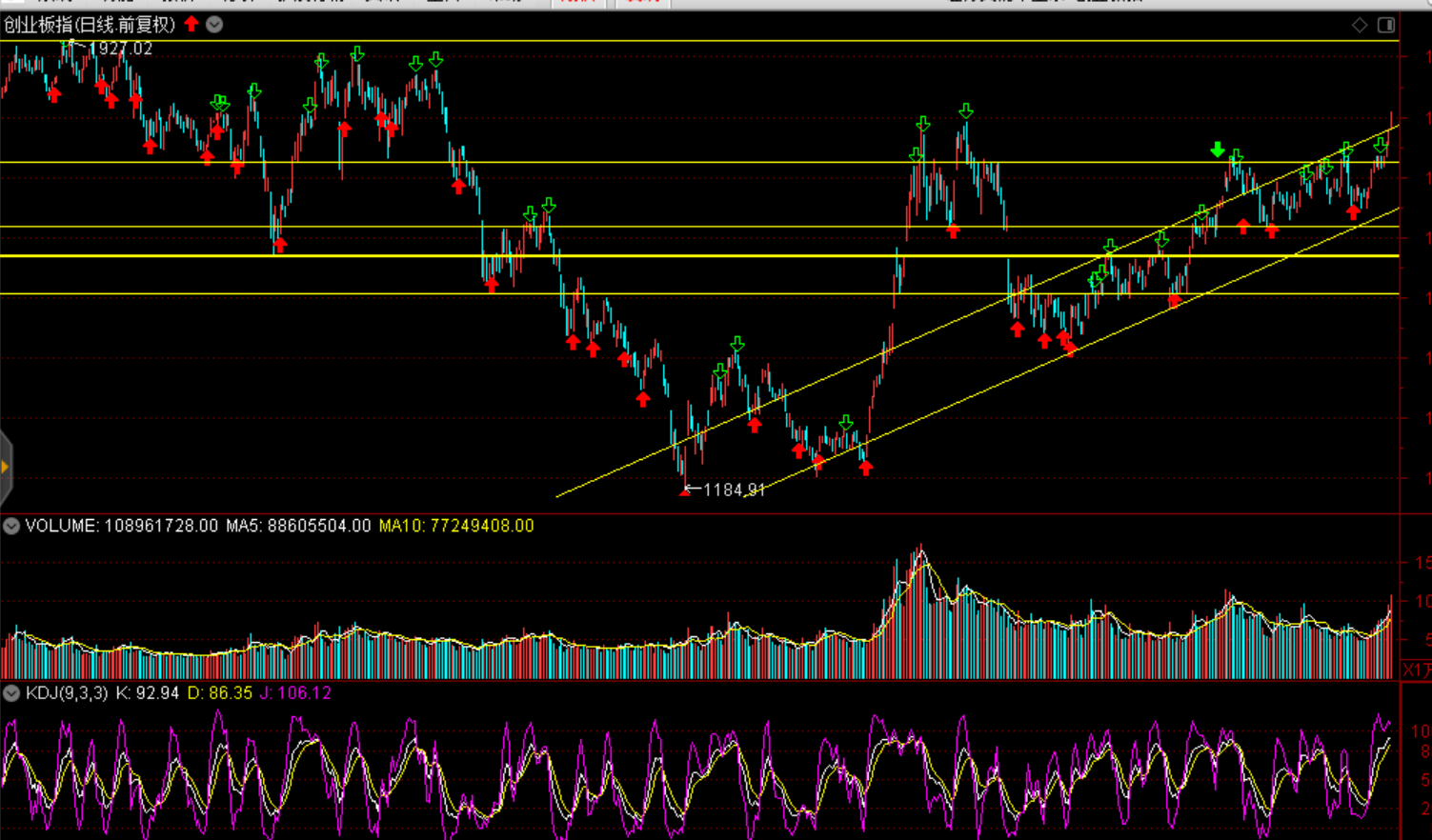 周二兩市股指放量攀升,各大股指均以中陽報收。上證指數(shù)收盤漲1.27%,收復(fù)3000點并創(chuàng)三個月新高;深證成指漲1.45%續(xù)創(chuàng)8個月新高;創(chuàng)業(yè)板指站上1800點,創(chuàng)出一年半新高。兩市成交7516億元,環(huán)比大幅放量1289億元,刷新三個月以來最高。北向資金凈流入88.06億元,連續(xù)24日凈流入,累計凈流入911億元。盤面看有色金屬、農(nóng)林牧漁、房地產(chǎn)、非銀金融板塊漲幅居前,智能電視、券商概念、蘋果概念、石墨烯、OLED概念板塊走強,漲停個股主要集中在石墨烯、OLED、華為概念、鋰電池等概念板塊。兩市合計3087只個股上漲,563只個股下跌。包括ST股在內(nèi),共有63只個股漲停,僅1股跌停;
