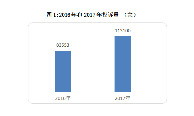 公共設(shè)施服務(wù)投訴21508宗,同比2016年的1101宗增長超過18倍,投訴量的增長主要來自于小鳴單車、小藍(lán)單車等共享單車投訴。
