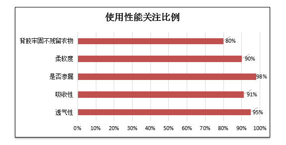 依據(jù)前期消費者調(diào)查顯示,女性消費者除了擔(dān)心衛(wèi)生巾產(chǎn)品的安全問題,還會關(guān)注其吸附量及表面的干爽程度等使用感受,即衛(wèi)生巾標(biāo)準(zhǔn)要求的滲入量及吸水倍率指標(biāo)。